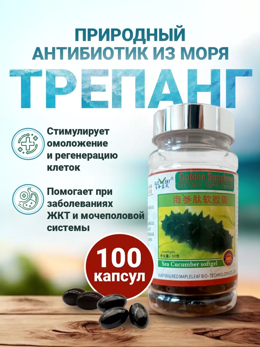 Трепанг капсулы для сердца сосудов почек печени детокс 100шт. Трепанг, также известный как морской огурец, в традиционной китайской медицине является лекарством для повышения иммунитета. Он используются в качестве натурального антибиотика для лечения различных заболеваний и состояний уже в течение многих столетий.