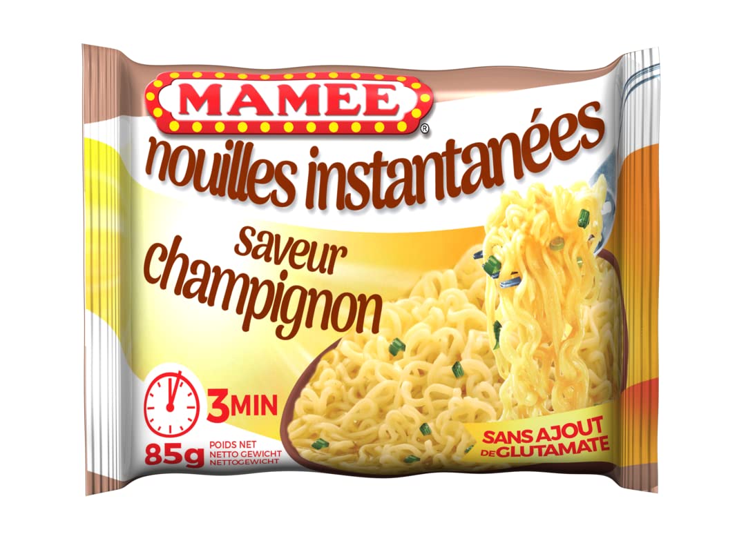 Mushroom flavored instant noodles. MAMEE is the favorite instant noodle brand among Malaysians because of their spicy taste. INGREDIENTS WHEAT flour 69 (GLUTEN), palm oil, salt, stabilizer (E452i, E501i, E412) DIRECTIONS FOR USE Immerse the noodles in 400 ml of boiling water for 2-3 minutes then add the seasoning sachet and mix well SAFETY WARNING Traces of shellfish, soy, peanuts, sesame, mustard, milk, fish DISCLAIMER Photography not contractual. The above information is provided for information purposes only. It is not necessarily exhaustive and cannot replace the information on the product packaging, which alone is authentic and to which you are invited to refer, particularly in case of food intolerance. Malaysian noodles Easy to cook Ideal for small appetites. Imported by Geïimporteerd door EAST-WEST Distribution 8, rue des Vieilles Granges 78410 AUBERGENVILLE. Des nouilles instantanées arôme champignon. La marque MAMEE est la marque de nouille instantanée préférée des Malaisiens en raison de leur goût épicé. INGRÉDIENTS Farine de BLÉ 69 (GLUTEN), huile de palme, sel, stabilisant (E452i, E501i, E412) MODE D'EMPLOI Plongez les nouilles dans 400 ml d'eau bouillante pendant 2-3 minutes puis ajouter le sachet d'assaisonnement et bien mélanger AVERTISSEMENT DE SÛRETÉ Traces crustacés, soja, cacahuètes, sésame, moutarde, lait, poisson CLAUSE DE NON-GARANTIE Photographie non contractuelle. Les indications ci-dessus sont données à titre d'information. Elles ne sont pas forcément exhaustives et ne sauraient se substituer aux informations figurant sur l'emballage du produit qui font seules foi, et auxquelles vous êtes invités à vous reporter, notamment en cas d'intolérance alimentaire. Nouilles malaisiennes Facile à cuisiner Idéal pour les petites faims. Importé par Geïmporteerd door EAST-WEST Distribution 8, rue des Vieilles Granges 78410 AUBERGENVILLE.