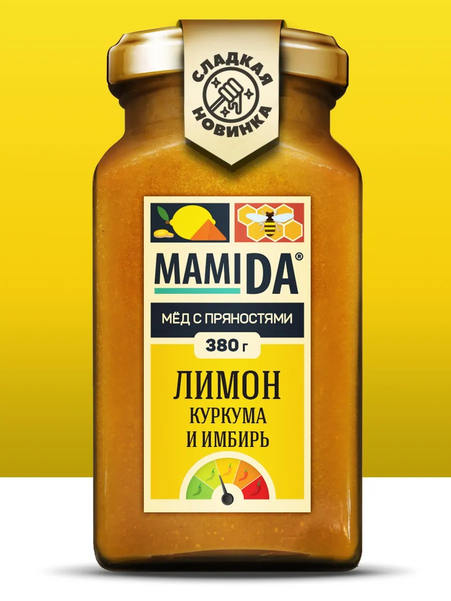 Мед со специями куркума, имбирь и лимон МамиДА, 380г