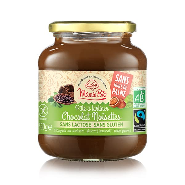 This chocolate hazelnut spread offers the taste and texture of an exceptional spread in a gluten-free, lactose-free, and palm oil-free recipe! Certified organic and fair trade product. 350g jar. See the full descriptionLactose-free chocolate and hazelnut spread 350g. Mamie Bio. Sweet grocery store. Organic dairy-free spread. Spread. Cette pâte à tartiner chocolat noisette offre le goût et la texture d'une pâte à tartiner d'exception dans une recette sans gluten, sans lactose et sans huile de palme ! Produit certifié bio et issu du commerce équitable. Pot de 350g. Voir le descriptif completPâte à tartiner chocolat noisette sans lactose 350g. Mamie Bio. Epicerie sucrée. Pâte à tartiner sans lait bio. Pâte à tartiner.