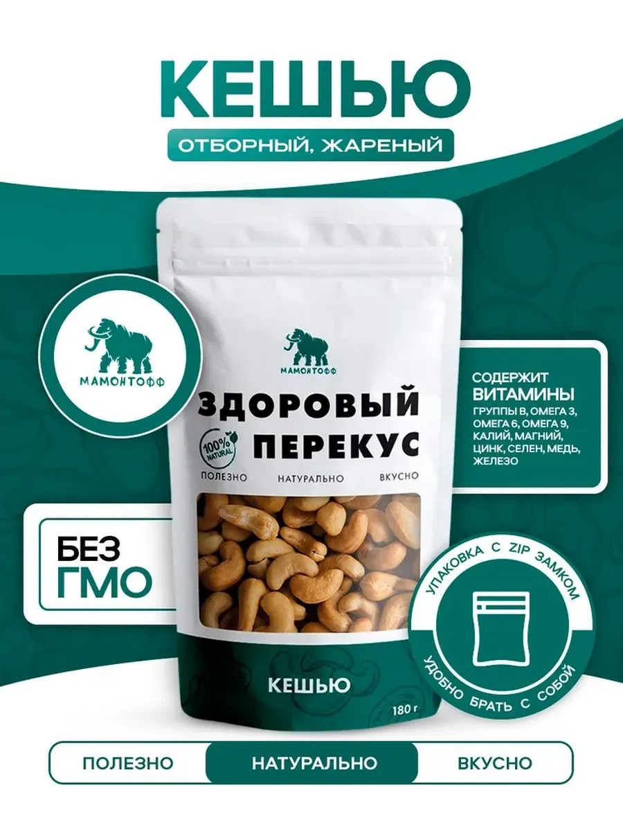 Mamontoff roasted cashews are the perfect choice for those who value high-quality and delicious nuts. Packaged in a convenient 180-gram bag, these roasted cashews are a wonderful addition to your diet.