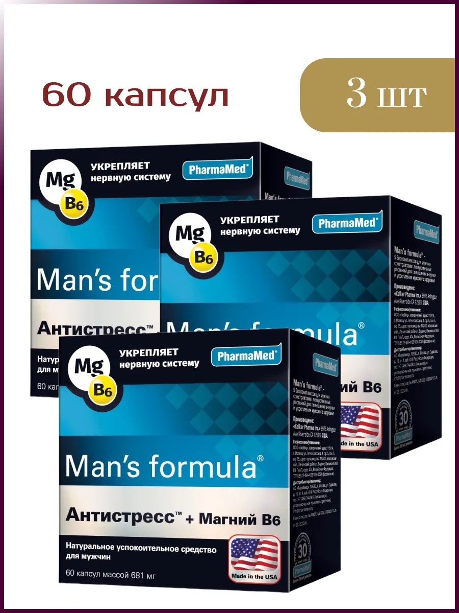 During periods of nervous tension, the body depletes vitamins and microelements vital to the nervous system. Stress-related smoking and excessive consumption of black tea and coffee further deplete these beneficial microelements. A deficiency of these nutrients can remain latent for a long time, quickly leading to complete exhaustion of the nervous system, when the body is no longer able to properly respond to the environment and defend itself against nervous influences. Increased risk of myocardial infarction and stroke, high blood pressure, insomnia, and decreased performance are typical consequences of constant stress, which can jeopardize a man's successful career. Unfortunately, the traditional method of dealing with stress with medication inevitably leads to negative consequences: decreased attention, daytime sleepiness, and potency problems. Today, one of the safest and most effective ways to cope with stress is the natural Antistress complex, which enriches the body with precisely those vitamins and microelements that are most quickly depleted during stress. The complex's action is enhanced by herbal ingredients, which ensure maximum effectiveness while maintaining high safety. Antistress dietary supplement quickly relieves emotional tension, lifts mood, increases productivity, and normalizes sleep. Its natural composition and lack of side effects make this vitamin complex recommended for long-term and safe use by men of all ages. Directions: Adults: Take 1 capsule twice daily with meals or as directed by a physician. Duration of use: 1 month. The course can be repeated if necessary.