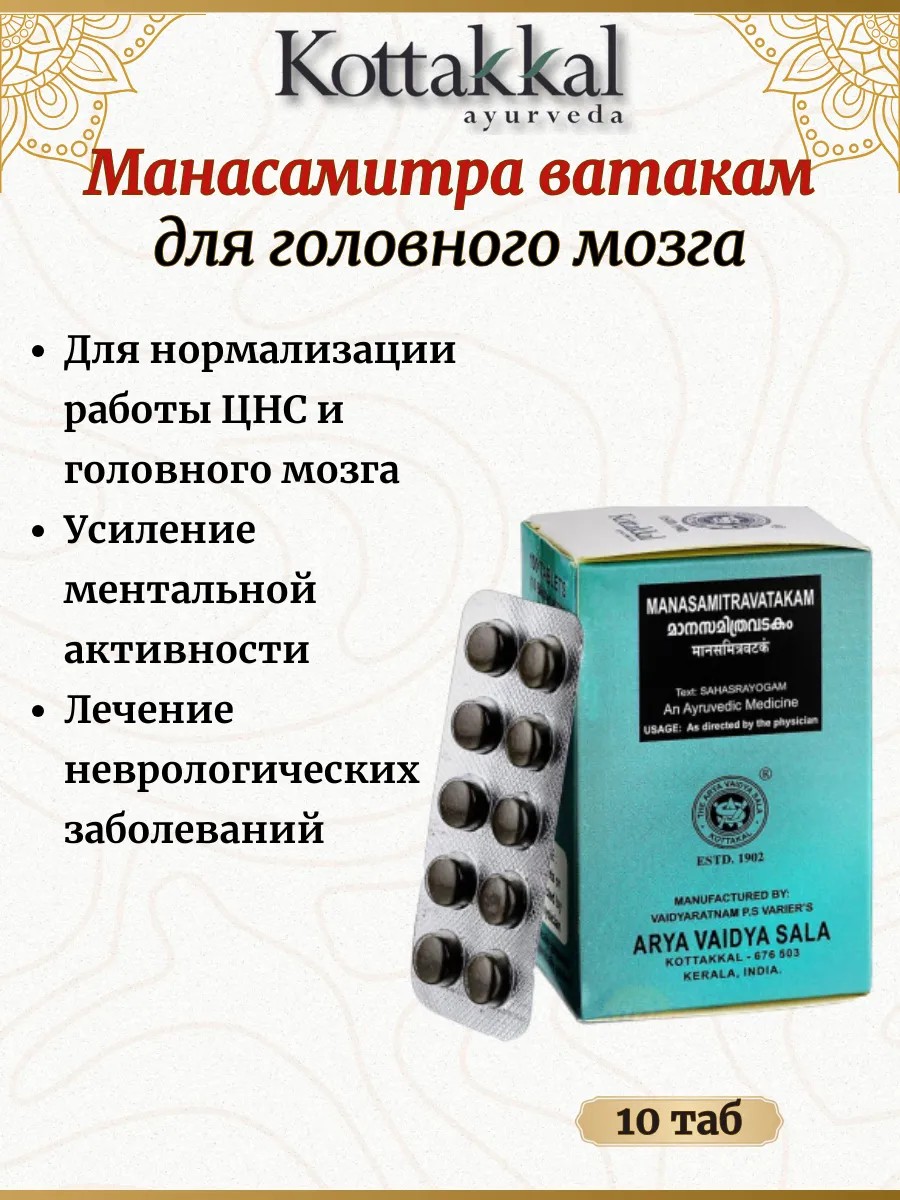 Способ применения: 1-2 таблетки дважды в день. Аюрведа рекомендует принимать Манасамитра Ватакам вместе с теплым молоком.