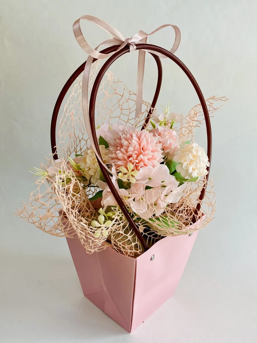 Параметры: высота кашпо (без ручек) -15 см, с ручками 32 см, ширина кашпо - 11 см. ВНИМАНИЕ! Цвет кашпо и цветочного декора может отличаться от представленных на фото.