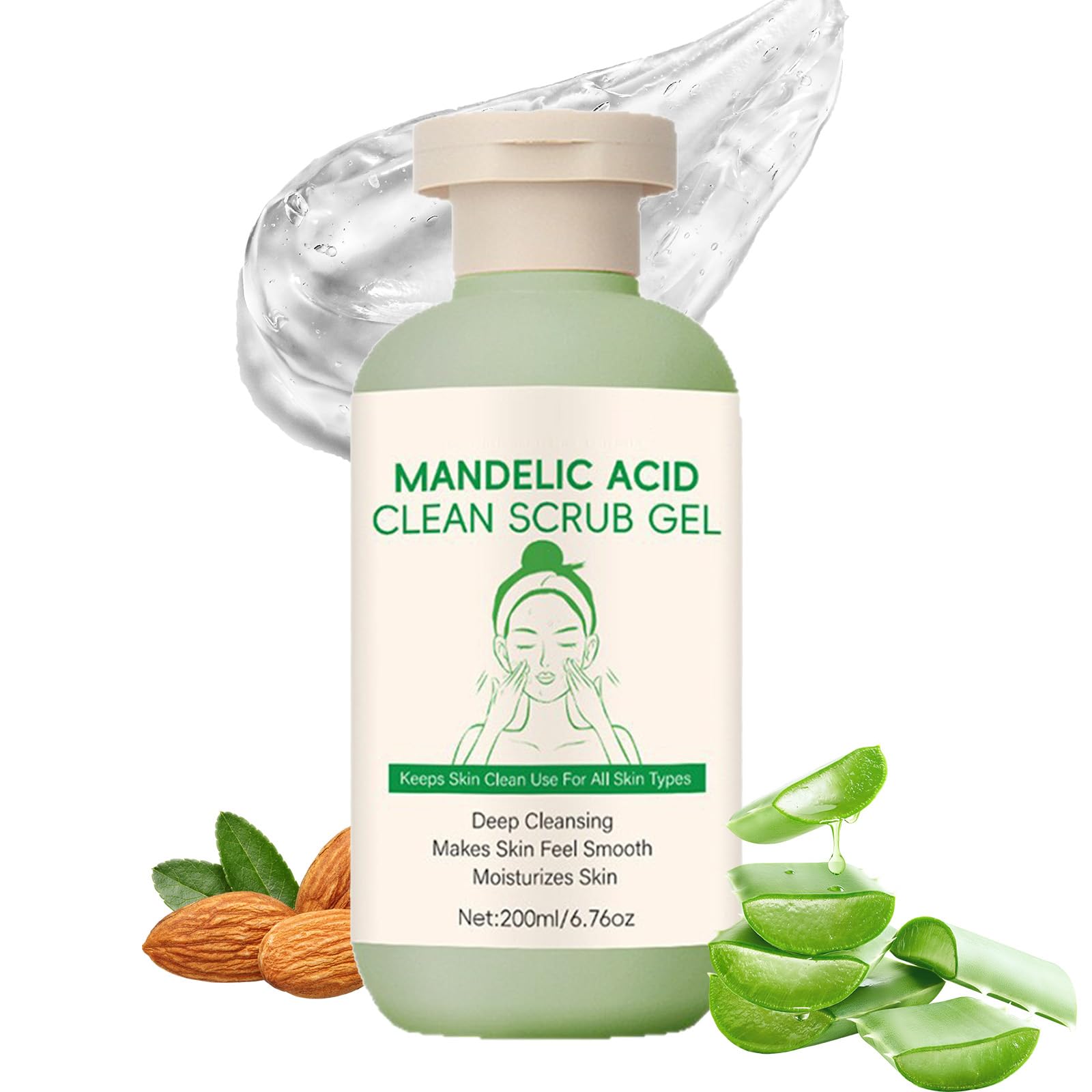 Get glowing today! PRODUCT FEATURES: ✓ Gentle exfoliation purify excess oil and dirt in pores ✓ Cleanses skin, improves dullness evens out skin tone ✓ Balance oil and activate healthy skin ✓ Deeply moisturize, lock in moisture and strengthen the skin barrier at the same time Package Content: Mandelic Acid Exfoliating Gel Scrub Net Content: 200 ml 6.76 oz Suitable for all skin types ? How to use: first clean face and dry, take an appropriate amount of gel evenly applied to the skin, massage in a circular motion until the horny layer is softened, rinse off with water for subsequent skin care steps. TIPS: Recommended to use 1-2 times a week, do not use every day, so as not to damage the health of the stratum corneum!SUITABLE FOR ALL SKIN TYPES: This body exfoliating scrub can be used whether you have oily, dry, normal or combination skin, especially dry and rough skin, it is an ideal choice for your daily exfoliation care. VERSATILE USE: This exfoliator can be used to cleanse areas such as the buttocks, thighs, knees, ankles, and face. Free from harsh scrub particles, it delivers a comfortable exfoliation experience while preserving the skin's natural moisture barrier. SOOTHE SKIN: This gentle exfoliating gel has a lightweight texture. Enriched with aloe vera, it helps calm and hydrate skin, effectively reducing redness and discomfort while strengthening the skin barrier for all-day hydration and radiance. DEEP CLEANSING: Regular use of our peeling gel purifies pores, removes excess oil, blackheads, and impurities, and improves dullness caused by excess dead skin cells, leaving skin radiant. GENTLE EXFOLIATION: Our exfoliating gel scrub contains natural mandelic acid, which deeply exfoliates without causing dryness or tightness. It helps refine pores, reduce dullness, promote skin renewal, and restore soft, smooth skin.