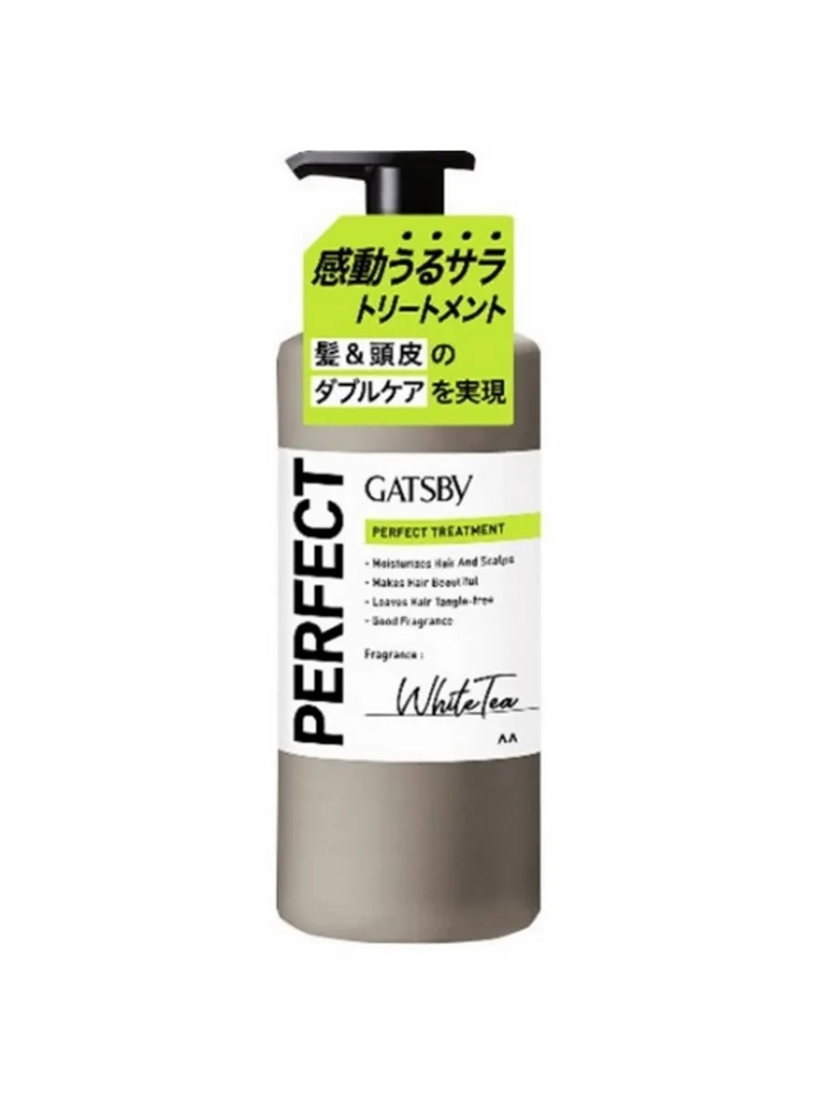 Mandom Мужской бальзам для волос Gatsby Perfect Treatment для восстановления кутикулы и ухода за кожей головы, аромат белого чая, 380 г.
