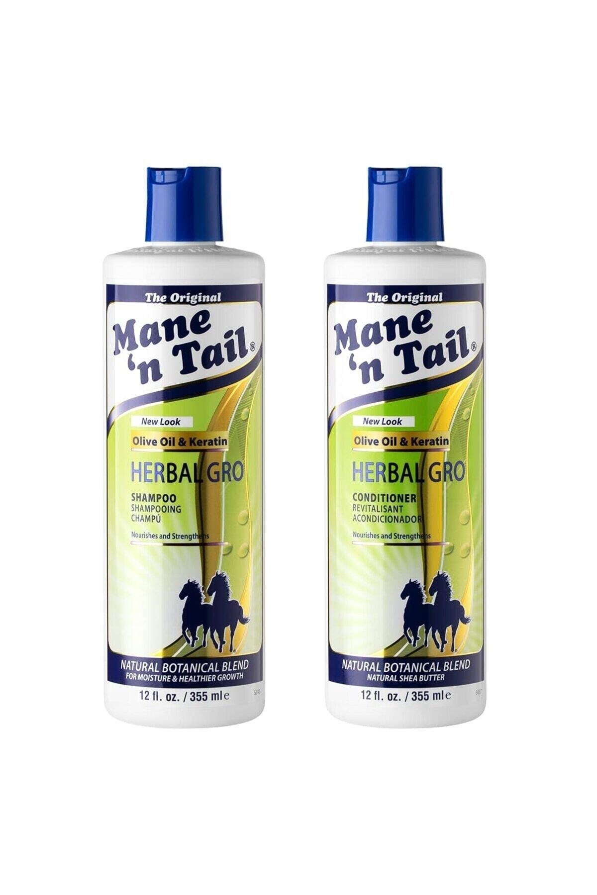 MANE'N TAIL Herbal Gro Nourishing Strengthening Keratin Plant Essence Shampoo Conditioner Duo Set 355 ML