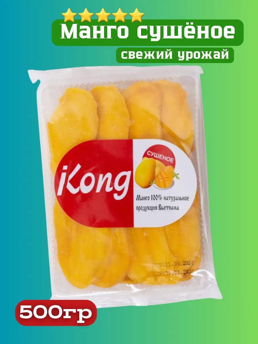 Манго "Конг" без сахара - идеальный продукт для людей, придерживающихся здорового питания и вегетарианцев.