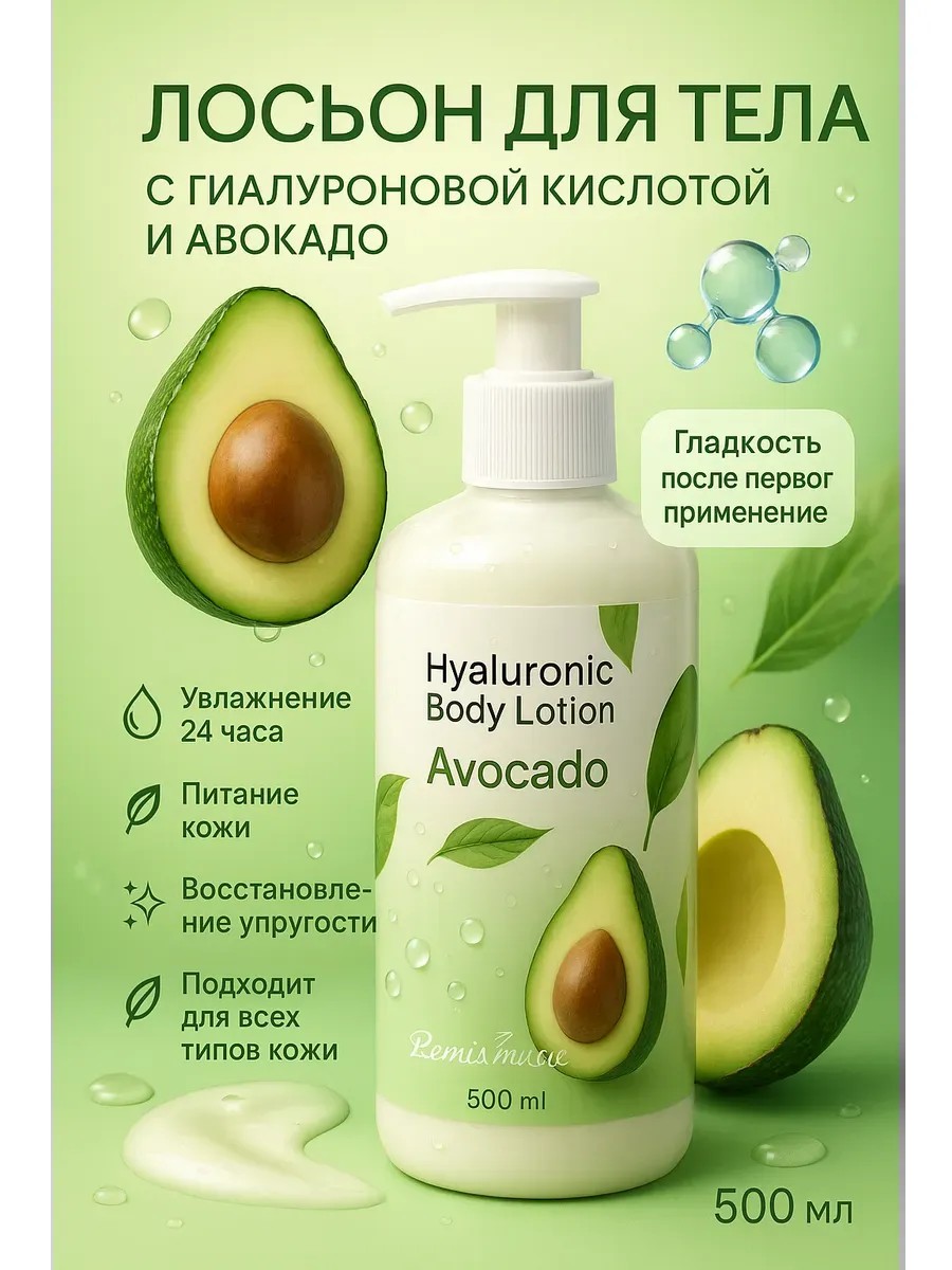 Лосьон для тела с гиалуроновой кислотой и авокадо — это универсальное средство для ежедневного ухода, созданное для восстановления мягкости и упругости кожи. Легкая текстура быстро впитывается, не оставляя липкой плёнки, а натуральные компоненты дарят ощущение свежести и комфорта в течение всего дня. Средство глубоко увлажняет, устраняет сухость и шелушения, помогая коже оставаться гладкой и эластичной.