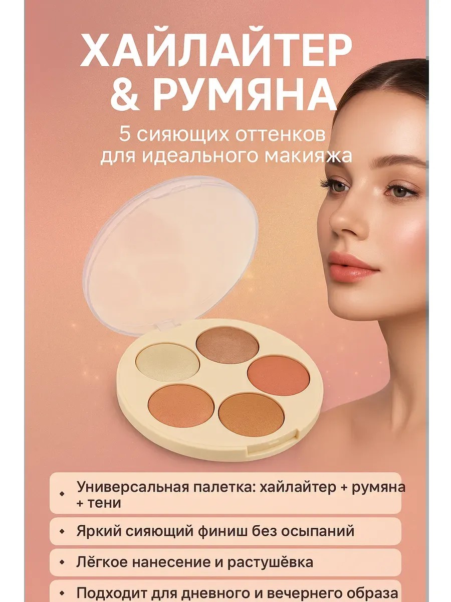 Мани Хайлайтер и румяна 5 оттенков универсальный