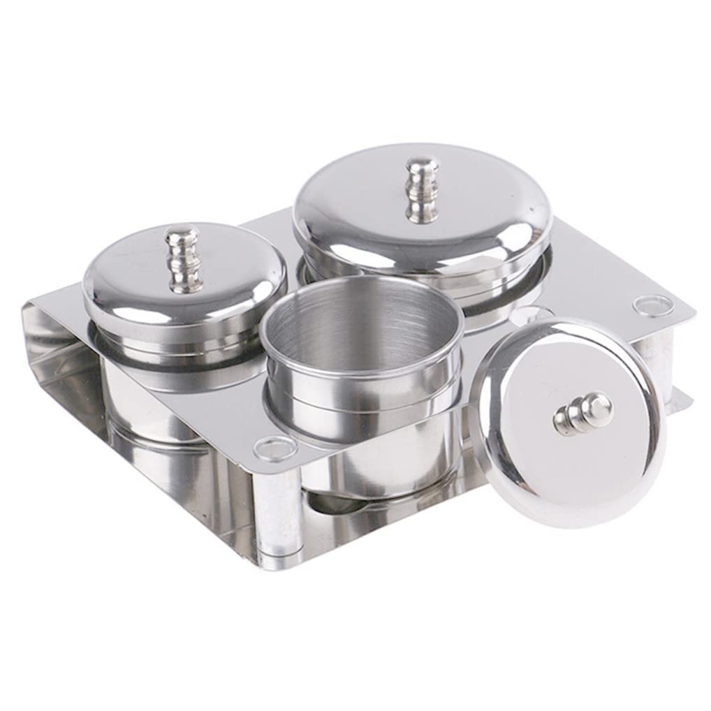 Powder. Capcity :1pcs big cups+2pcs small cups+1pcs 3hole organizer tray. -Package of manicure container includes 3pcs/Set Stainless Cups. -Manicure crystal cup are made of high quality material: Stainless Steel, which weights approximate 187.5g. -Nail liquid dish can be widely used for various purposes and various function.
