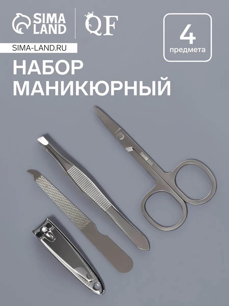 Набор маникюрный, 4 предмета, серебристый