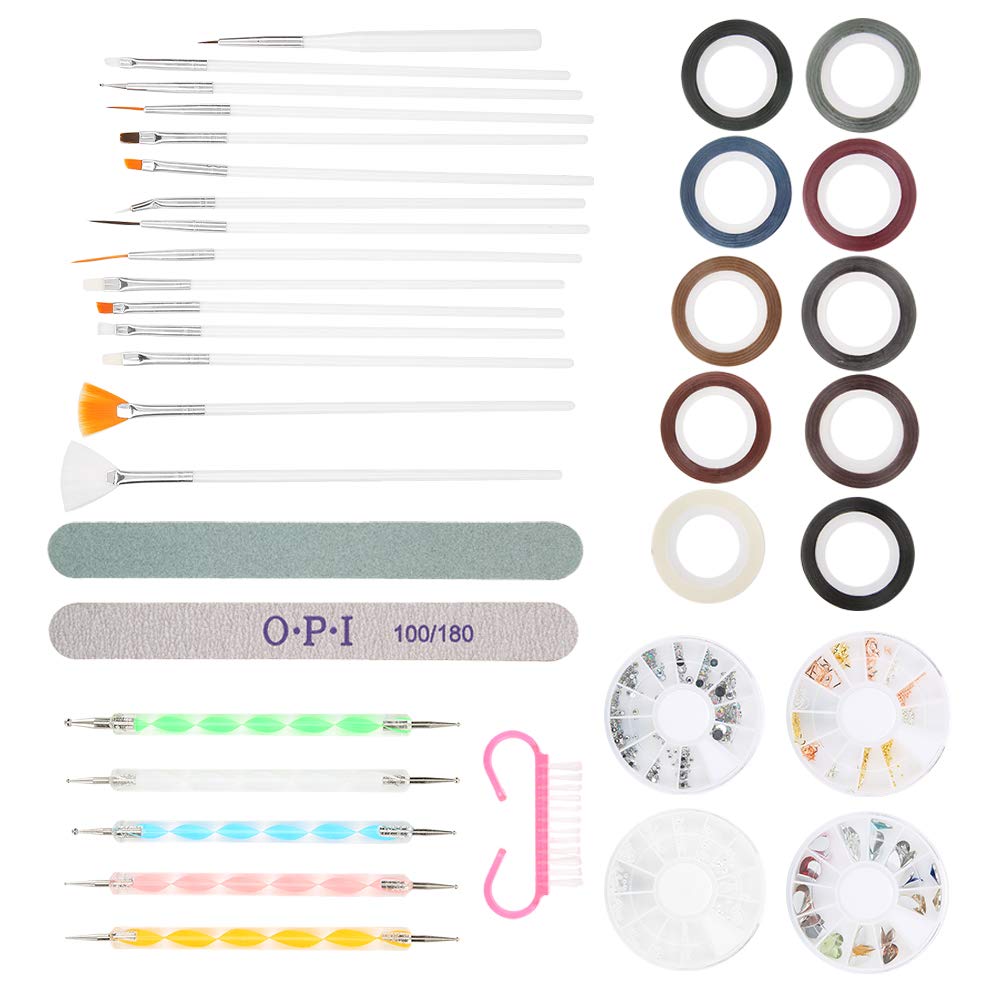 Portable and light, easy to operate and carry, can be used in home, nail shops. There are different styles of 4 boxes of nail rhinestones and 10 packs of gold and silver wire, can diy the effect you want. Equipped with 5 point drill pens, 15 nail paint pens of different specifications, with more options. Polishing strips and nail files can effectively repair nails and make nails more visible. Use of high-quality materials, non-toxic and harmless, green, environmental friendly and healthy, can be used with confidence.