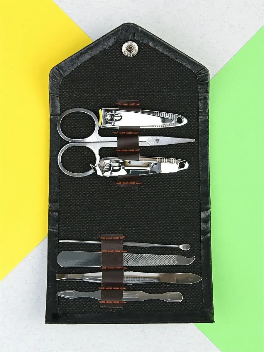 Многофункциональный и компактный набор для маникюра, педикюра и ухода за лицом, состоящий из 7 предметов, станет для Вас незаменимой вещью как дома, так и в поездках. Благодаря яркости и качеству исполнения, набор станет прекрасным подарком для Ваших близких и родных. Все предметы изготовлены из высококачественной нержавеющей стали, а удобный футляр выполнен из экокожи высокого качества. В набор входят: ножницы; клипсеры (маникюрные щипчики) для обрезания ногтей- 2 штуки; шабер (двухсторонний инструмент для сдвигания и зачистки кутикулы); пилочка для придания формы ногтям; пинцет для выщипывания бровей и вросших волосков; ухочистка.