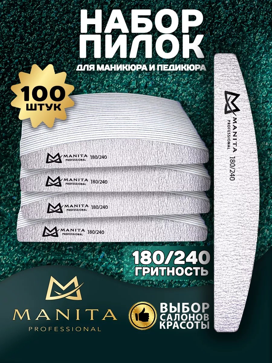 Профессиональный набор пилок для ногтей в виде лодки для маникюра и педикюра 100 шт. Абразивность сторон пилочки 180 на 240 грит. Подходит для натуральных и искусственных ногтей. Помогает подготовить ногтевую пластину для процедуры покрытия гель лаком, моделирования, а так же наращивания. Двусторонние пилки выполнены из отличного материала с качественным абразивом с двух сторон. Идеальный набор и подарок для мастера в соотношении цена - качество, для повседневного ухода за ногтями клиента и экономии собственного бюджета. Пилкой можно придать ногтям нужную форму, спилить лишнюю длину и отполировать поверхность ногтевых пластин. В наборе 100 шт пилок лодка абразив 180/240 грит. В нашем магазине вы можете подобрать необходимую для работы гритность, а так же форму. Бренд Manita Professional работает с качественными материалами и гарантирует удобство при использовании.
