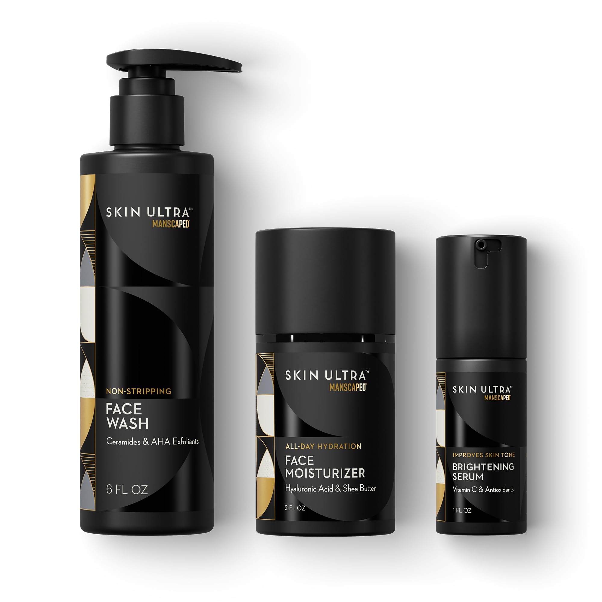 MANSCAPED Skin Ultra Daily Regimen - Men's Skincare Routine Essentials with Face Wash Face Moisturizer & Brightening Serum Formulated with A Ceramide Complex for Cleansing Exfoliating & Hydration