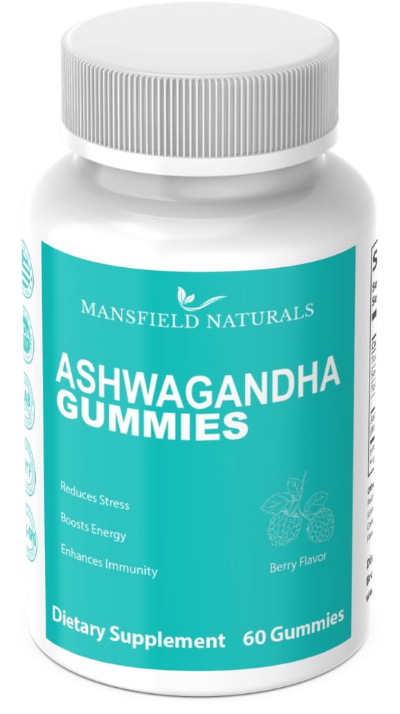 Mansfield Naturals Ashwagandha Gummies 60 Count Natural Stress Relief & Mood Support Vegan Non-GMO Gluten Free Herbal Supplement Pack of 1