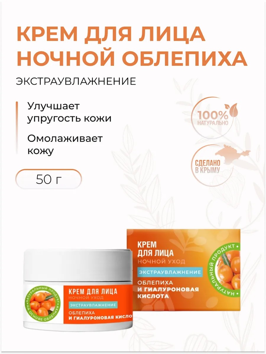 Крем для лица Ночной "Экстраувлажнение" облепиха и гиалуроновая кислота, 50 г