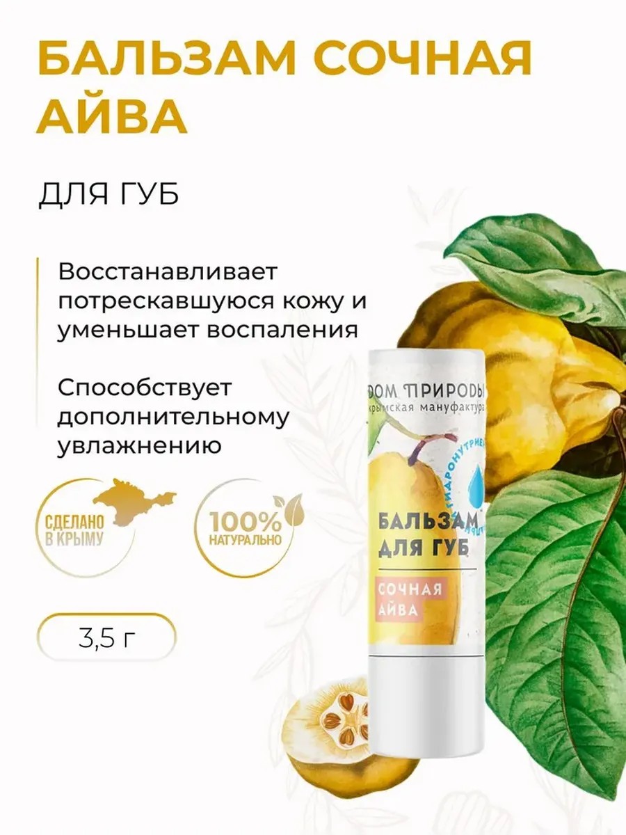 Мануфактура Дом природы Бальзам для губ Сочная айва гигиеническая помада, 3,5г