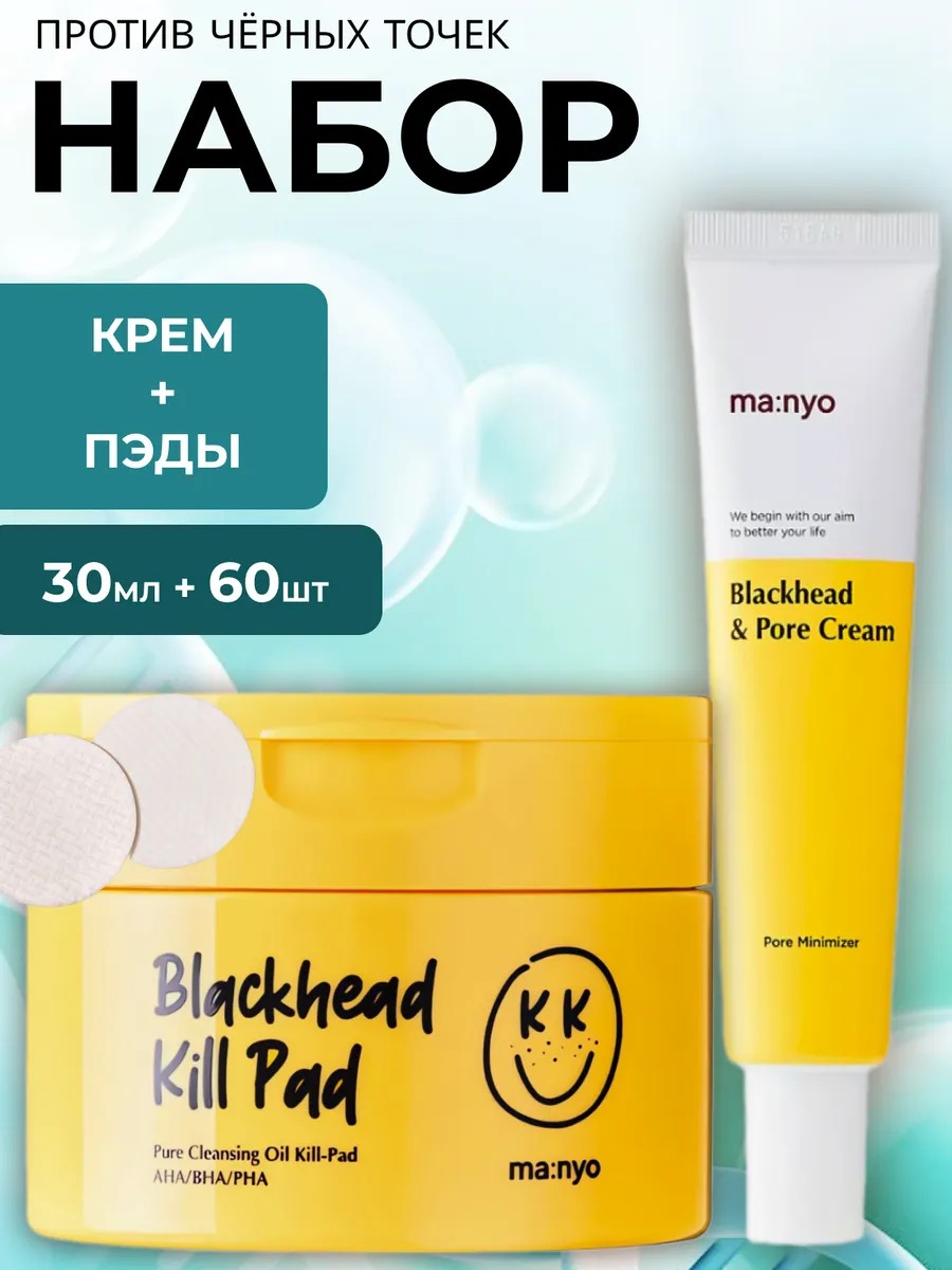 Себорегулирующий крем против чёрных точек Manyo Blackhead & Pore Cream матирует и уменьшает жирность кожи, сужает расширенные поры. Деликатно отшелушивает ороговевшие частицы, разглаживает микрорельеф. Осветляет сальные нити и препятствует образованию комедонов. Содержит BHA, PHA и LHA, гидролат гамамелиса, Anti-Sebum P, экстракты кофе арабика и чайного дерева.