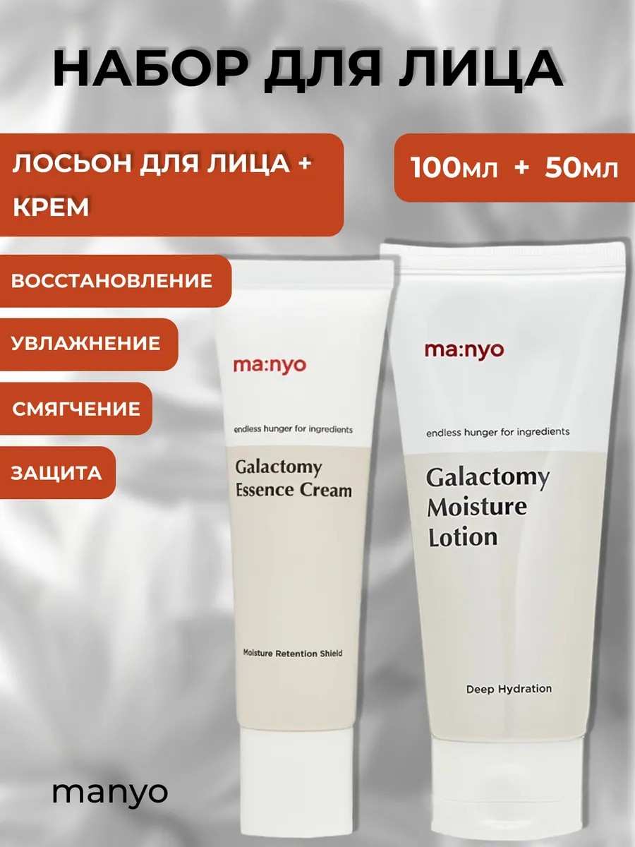 Познакомьтесь с набором для лица от manyo — ваш путь к сияющей коже начинается прямо сейчас! В этот набор входят два незаменимых продукта: увлажняющий лосьон и питательный крем. Лосьон, словно нежный бриз, освежит вашу кожу, подготовит ее к дальнейшему уходу и подарит ощущение свежести. Крем, словно бархатная вуаль, окутает вашу кожу заботой, глубоко увлажнит ее и вернет ей упругость. Используйте этот дуэт каждый день, чтобы ваша кожа сияла здоровьем и красотой. Лосьон и крем легко впитываются, не оставляя липкости, и подходят для всех типов кожи. Наслаждайтесь комфортом и уходом, которые подарит вам этот набор от manyo!