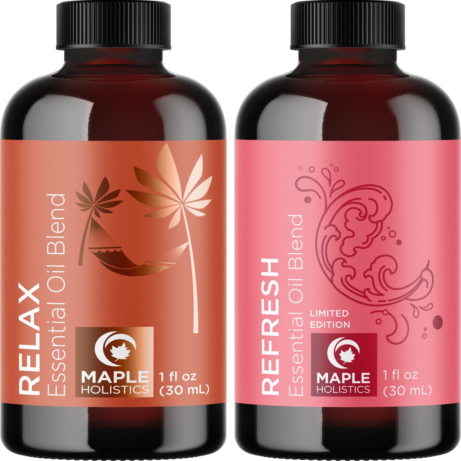 Maple Holistics Essential Oil Set - Refresh and Relax Calming Essential Oil Blends for Diffuser Aromatherapy and Baths - Relaxing Essential Oils for Diffusers for Home