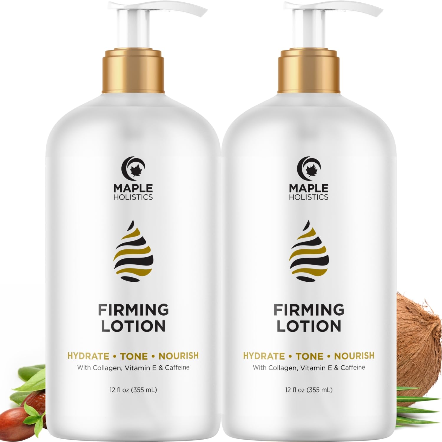 Maple Holistics Skin Firming Body Lotion for Women - Caffeine & Collagen Body Lotion with Hyaluronic Acid for Dry Crepey Loose Skin and Cellulite (2 Pack) Sweet Almond 1 Count (Pack of 2)