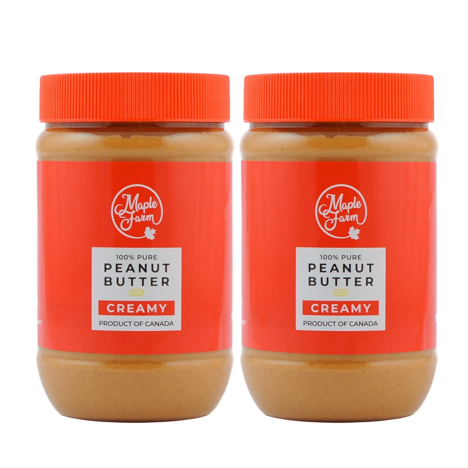 MapleFarm - 100% Pure Creamy Peanut Butter 2 x 500g (1kg) - Protein and Natural Cream - Creamy peanut butter