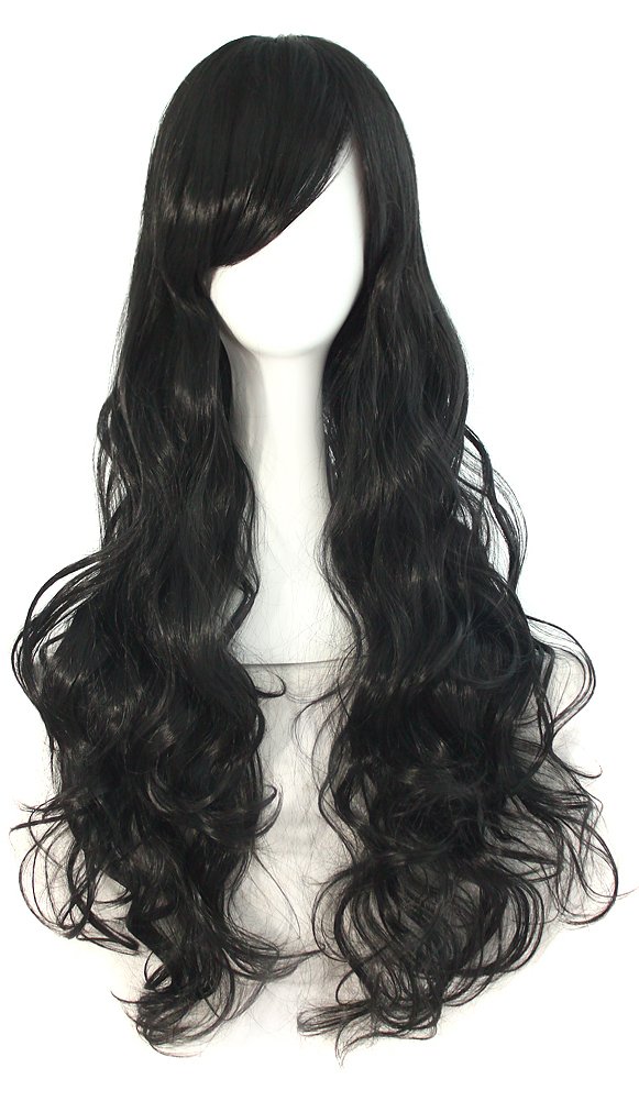 MapofBeauty 28" 70cm Long Curly Hair Ends Costume Cosplay Wig (Black)