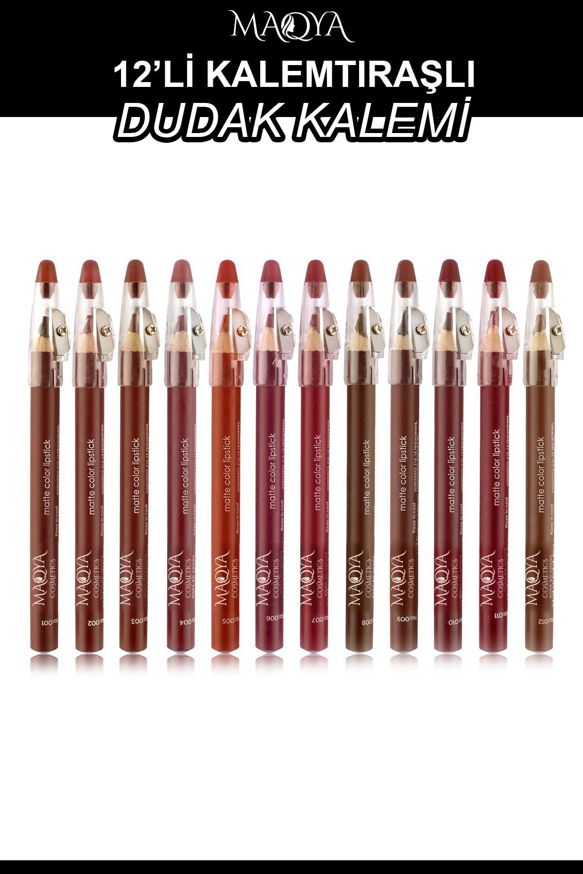 MAQYA Cosmetics 12-Piece Thick Lip Pencil with Sharpener