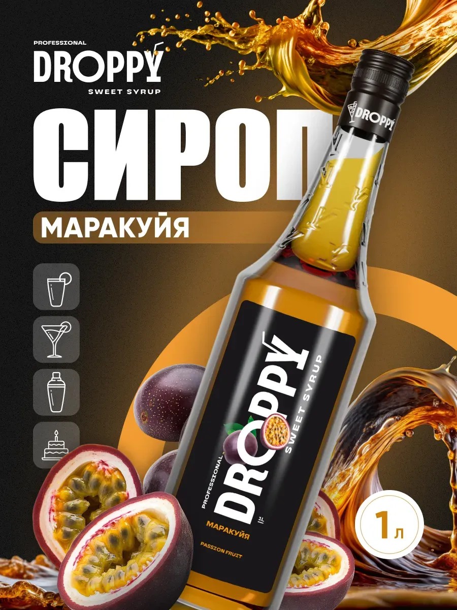 Сироп DROPPY Маракуйя – имеет экзотический тропический вкус спелой маракуйи и обладает насыщенным ярко-оранжевым цветом. Восхитительная концентрация аромата и вкуса тропического фрукта, делает этот сироп оригинальным и неповторимым. Густая и мягкая структура сиропа, а так же его сладость, переплетается с фруктовыми тонами и характерным вкусом плода. Сироп запоминается соблазнительным ярким послевкусием и используется в широком диапазоне сезонных напитков, а также смузи и лимонадов. Приятная сладость, радующий глаз цвет и манящий аромат - сироп сделает ваши блюда и напитки красивыми и необычными. Сироп для для коктейлей, кофе, бабл ти. Сироп для выпечки, пропитки бисквита, крема, торта и даже в кашу или творог. Можно использовать сироп для мороженого, это отличная замена топпинга. Сироп + молоко = вкуснейший молочный коктейль. Инвертный сахарный сироп для кофе можно употреблять без добавления обычного сахара. Красота и новые вкусы привычных продуктов питания, еда обретает приятный цвет и нежный аромат, сладость без вреда для фигуры и с заботой о близких, универсальность и широта применения это незаменимый ингредиент для тех, кто любит сладости и вкусняшки. Успешно замещает мед в рационе веганов и людей, имеющих аллергию на продукты пчеловодства. В ассортименте Дроппи представлены сиропы для кофе, коктейлей и лимонадов, а также наборы сиропов для кофе.