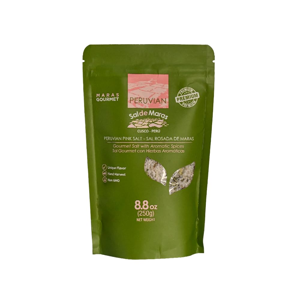 MARAS GOURMET MARAS GOURMET | Maras Salt | Pink Salt from Peru with Aromatic Spices - Unique Flavour and Hand Harvested | Unrefined | 250g (Pink Salt with Spices Coarse Grains)