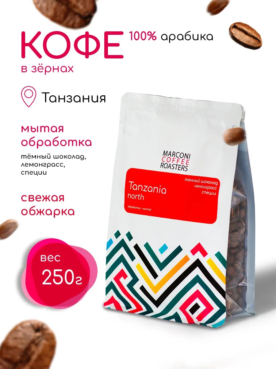 It is perfect for both morning awakening and evening relaxation. Enjoy a cup of Tanzania North Whether with friends or during a quiet evening at home, Tanzania North will always create an atmosphere of comfort and warmth. Furthermore, Tanzania North is perfect for a variety of brewing methods: from classic espresso to a French press or drip coffee maker. Each method reveals new facets of the flavor of this amazing coffee. Try Tanzania North from Marconi Coffee Roasters and discover a new level of coffee enjoyment! This product will not only delight your taste buds but will also be a true discovery for quality coffee lovers around the world. Don't miss the opportunity to add this unique drink to your collection!