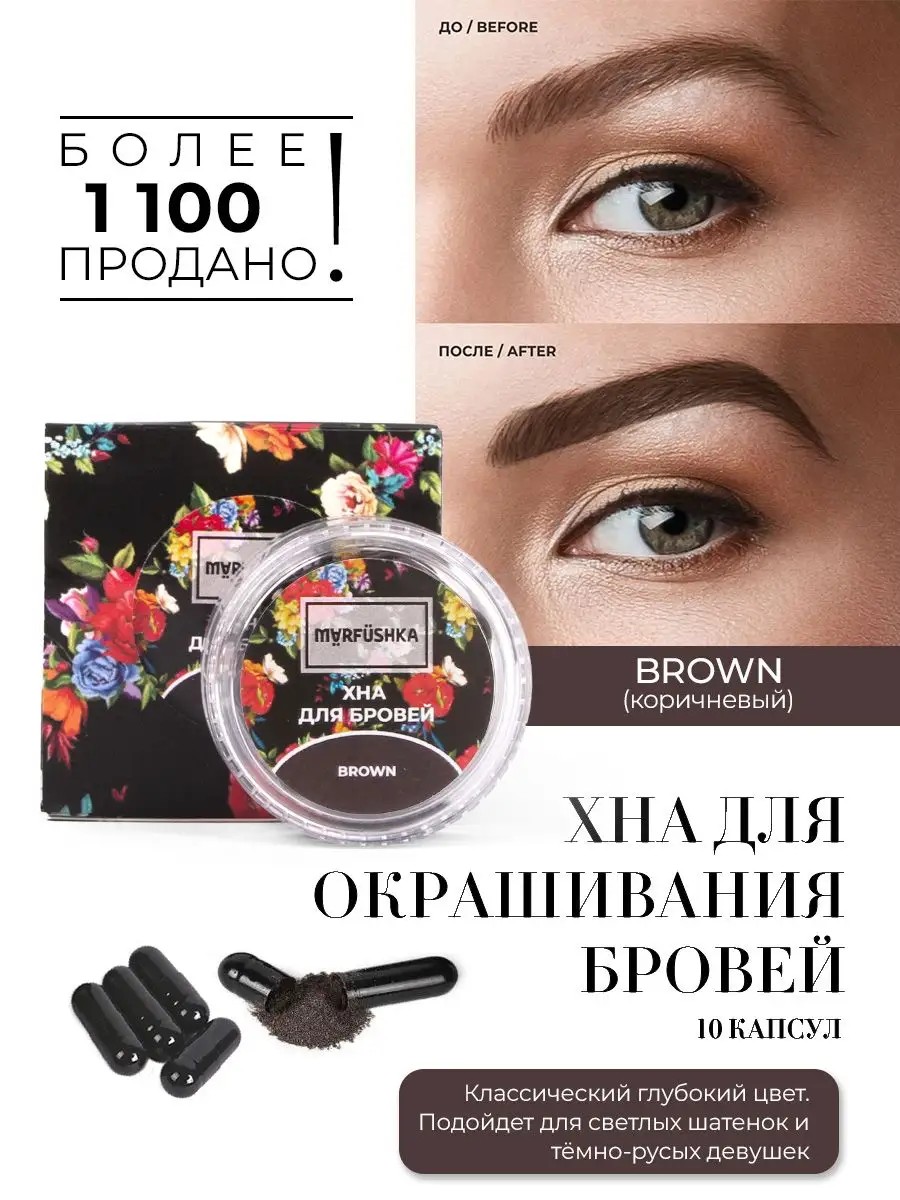 Хна для бровей 10 капсул, Окрашивание бровей, Макияж бровей