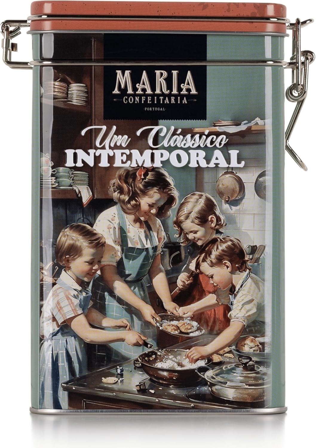 Savor the comforting taste of apple and cinnamon in these handcrafted biscuits, presented in a vintage-inspired tin that adds charm and character to any setting. These crisp, golden biscuits are delicately spiced with cinnamon and infused with apple flavor, offering a warm and nostalgic taste experience. The 150g tin is designed with a timeless vintage aesthetic, featuring elegant illustrations and understated tones that make it ideal for reuse as a keepsake box, decorative container, or storage box. Whether in the kitchen, on a shelf, or as a thoughtful gift, it combines traditional flavor with classic style. Carefully crafted in Portugal with quality ingredients, these biscuits are a delightful companion to tea, coffee, or a relaxing break in your day. INGREDIENTS Wheat flour, sugar, sunflower oil, margarine (contains milk, soy), pasteurized egg white, pasteurized egg, apple topping (3.7 ), raising agents (sodium bicarbonate, disodium diphosphate), cinnamon (0.2 ), preservative: calcium propionate, apple flavouring.Biscuits aux pommes et à la cannelle dans une boîte de style vintage - 150 g - Biscuits croustillants et épicés - Boîte réutilisable pour offrir ou moments de théDESCRIPTION DU PRODUIT DESCRIPTION DU PRODUIT Savourez le goût réconfortant de la pomme et de la cannelle dans ces biscuits artisanaux, présentés dans une boîte d'inspiration vintage qui ajoute du charme et du caractère à n'importe quel environnement. Ces biscuits croustillants et dorés sont délicatement épicés avec de la cannelle et infusés avec une saveur de pomme, offrant une expérience gustative chaleureuse et nostalgique. La boîte de 150 g est conçue avec une esthétique vintage intemporelle, avec des illustrations élégantes et des tons discrets qui la rendent idéale pour une réutilisation comme boîte souvenir, récipient décoratif ou boîte de rangement. Que ce soit dans la cuisine, sur une étagère ou comme un geste attentionné, il combine saveur traditionnelle avec style classique. Soigneusement fabriqués au Portugal avec des ingrédients de qualité, ces biscuits sont un délicieux compagnon pour le thé, le café ou un moment de pause dans votre journée. INGRÉDIENTS Farine de blé, sucre, huile de tournesol, margarine (contient du lait, du soja), blanc d'œuf pasteurisé, œuf pasteurisé, garniture de pomme (3,7 ), levants (bicarbonate de sodium, diphosphate disodique), cannelle (0,2 ), conservateur : propionate de calcium, arôme de pomme.
