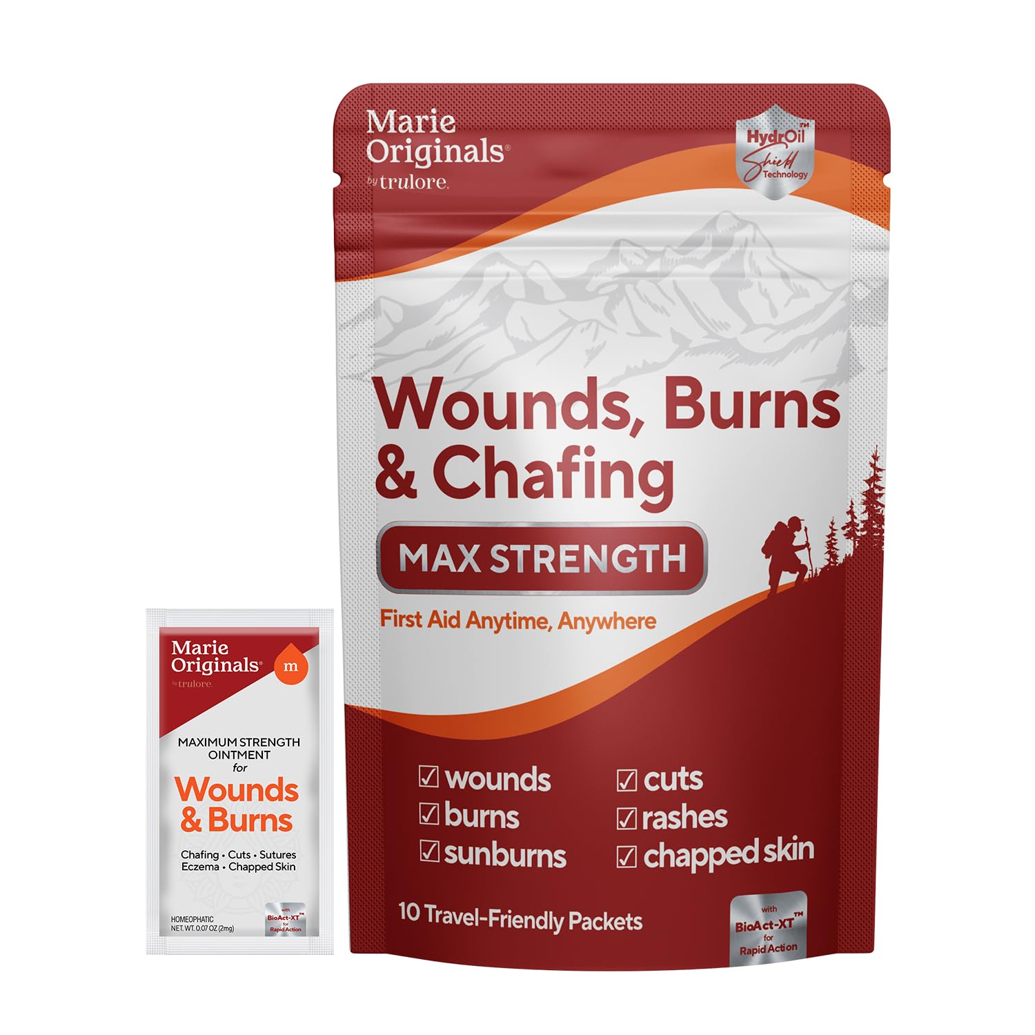 Marie Originals Wounds Burns & Chafing Pouch 10 Packets Max Strength First Aid Anti Chafing Cream for Men and Women with Natural Botanicals for Active Lifestyles Soothes Dry Cracked Skin On-The-Go