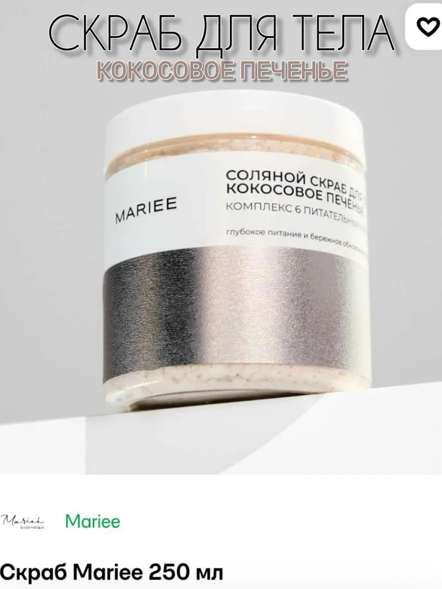 Соляной скраб для тела с ароматом кокоса и печенья Mariee – ваш незаменимый помощник в уходе за телом!