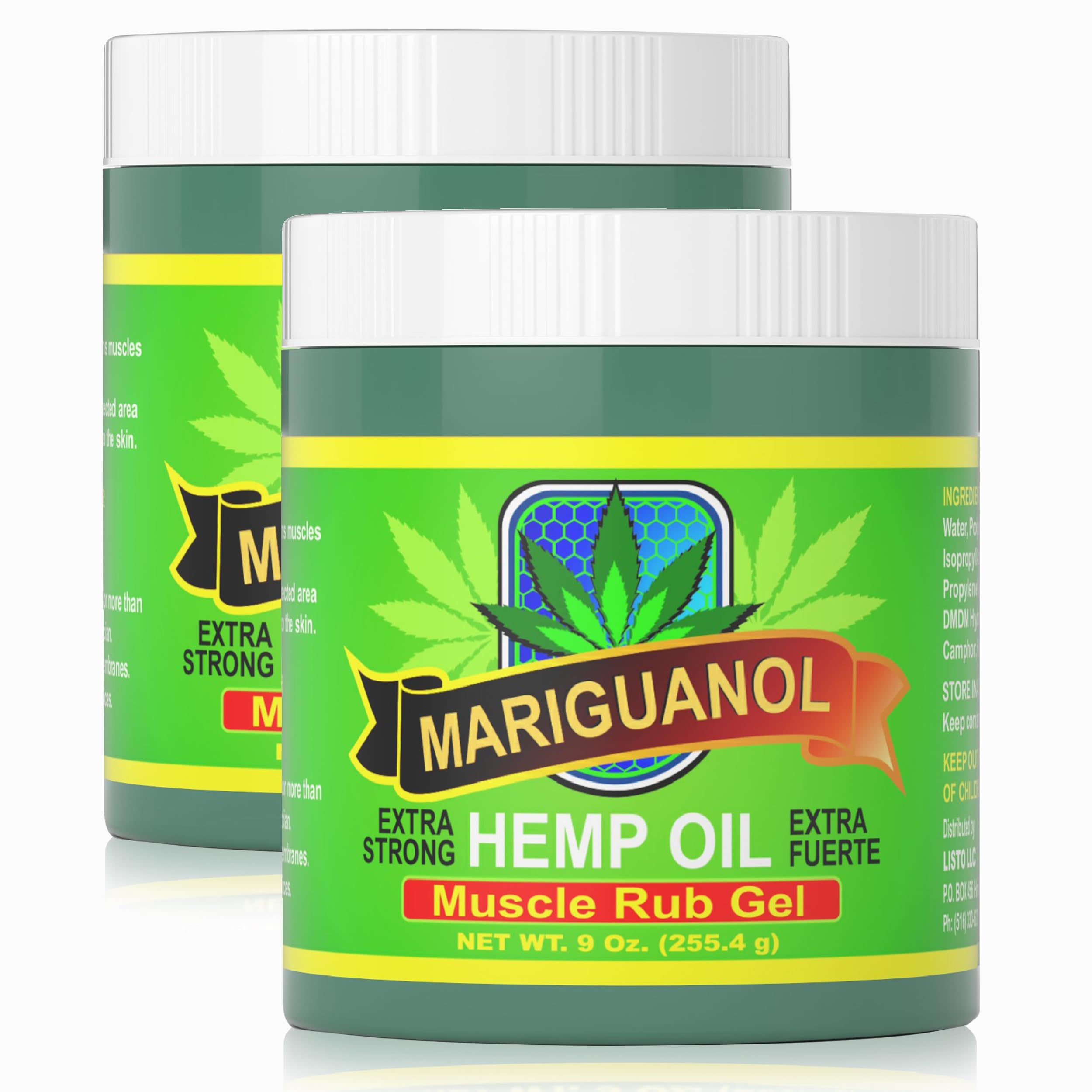 Mariguanol 9 Oz. Extra Strong Muscle Rub Gel with Hemp Oil Menthol & Camphor Cooling Rapid-Absorbing Topical Gel for Active Lifestyles Net Wt. 9 oz (255.4 g) Pack of 2