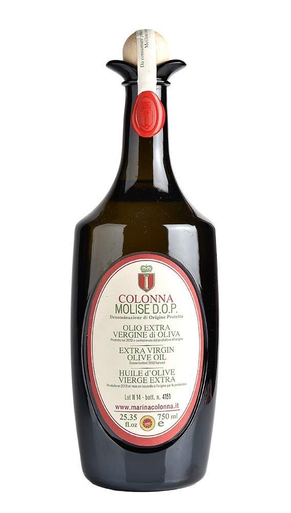 Amphora Marina Colonna Extra Virgin Olive Oil, PDO Molise. This olive oil has received numerous awards, both nationally and internationally. It is made from olives of the Leccino, Rosciola, and Gentile di Larino varieties. Aroma: A clear aroma of artichoke and tomato, blended with freshly cut grass and almond, with a medium fruity aftertaste. Pronounced bitter and peppery notes. Taste: Delicate and well-rounded, with notes of fresh vegetables and balsamic herbs, including rosemary and sage. Uses: Antipasti with oily fish, spelt soups, barley soups, salsiccia first courses, gratinated mussels, grilled fish, chicken, lamb, and goat cheese.Olive oil type: Medium fruity. Altitude: 180 m. Location: S. Martino in Pensilis - Campobasso. Producer's region: Molise. Producer: Marina Colonna.Marina Colonna Classic Anfora Huile d'olive 750 ml – Nouvelle récolte 2019 2020DESCRIPTION DU PRODUIT Huile d'Olive Extra Vierge DOP Molise Amphore Marina Colonna. Cette huile d'olive a été récompensée à plusieurs reprises, tant au niveau national qu'international. Il est obtenu à partir d'olives appartenant aux variétés Leccino, Rosciola et Gentile di Larino. Arômes : Arôme clair d'artichaut et de tomate, mélangé à de l'herbe fraîchement coupée et à l'amande, avec un arrière-goût fruité moyen. Notes amères et piquantes prononcées. Goût : Fines et rondes, avec des notes de légumes frais et d'herbes balsamiques, y compris le romarin et la sauge. Utilisation : Antipasti de poisson gras, soupes d'épeautre, soupes d'orge, premiers plats de salsiccia, moules gratinées, poissons grillés, poulet, agneau, fromage de chèvre.Type d'huile d'olive : Moyen fruité. Hauteur : 180 m. Localité : S.Martino à Pensilis - Campobasso. Région du fabricant : Molise. Producteur : Marina Colonna.