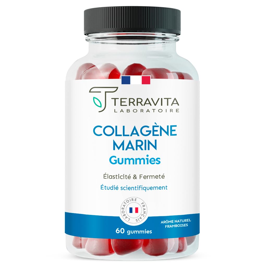 Marine Collagen Gummies | Firmness and Elasticity of the Skin | Cartidyss Patented Peptides | 25% Wrinkles in 3 Months | 60 Raspberry Flavored Gummies | No Bovine Gelatin | Made in France |