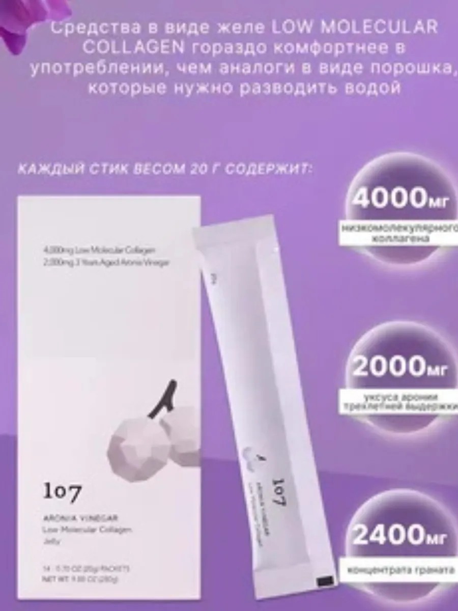 Low molecular weight collagen Aronia Vinegar Low Molecular Collagen 107, made in the Republic of Korea - helps improve the condition of the body, thanks to its vitamin-rich composition.