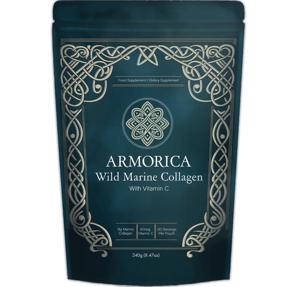 SUPPORTS SKIN, JOINTS BONES: Collagen is essential to the structure and integrity of your skin, joints, bones, tendons, and ligaments. Natural collagen levels decline with age, leading to fine lines, stiffness, and decreased mobility. Our marine collagen peptides help replenish your body's collagen stores, supporting youthful skin, joint comfort, bone strength, and overall vitality from the inside out. NEUTRAL FLAVOUR - Unflavoured and finely milled, our marine collagen powder mixes easily into coffee, tea, smoothies, or even soups and stews without altering the taste. Whether you're on a fasting regimen, post-workout recovery plan, or daily wellness routine, ARMORICA Marine Collagen fits effortlessly into your lifestyle. ENRICHED WITH VITAMIN C FROM FERMENTED BEEET: Vitamin C is a vital co-factor in collagen synthesis, helping your body form and stabilize new collagen fibers. It also acts as a powerful antioxidant, defending your existing collagen stores against oxidative stress. Combined with our premium marine collagen, Vitamin C boosts efficacy and ensures you're nourishing your skin, joints, and connective tissue at every level. LOW TEMPERATURE HYDROLYZED PEPTIDES: Our marine collagen is hydrolyzed at low temperatures into low molecular weight peptides, which are absorbed quickly and efficiently by the body. This means you get maximum results with minimal dosage—just 8g daily delivers targeted support for smoother skin, improved joint flexibility, stronger hair, and overall vitality. Perfect for active lifestyles and healthy aging. MICROPLASTIC TOXIN TESTED: Every batch of ARMORICA Marine Collagen powder undergoes rigorous third-party testing to ensure it is free from microplastics, heavy metals, and environmental contaminants. We believe in transparency and uncompromising standards—this is collagen you can trust to be clean, safe, and effective. Non-GMO and free from artificial additives, flavourings, or fillers. WILD NORTH ATLANTIC FISH: Sourced exclusively from wild-caught whitefish in the cold, clean waters of the North Atlantic, our marine collagen is harvested using sustainable fishing practices. Unlike farmed alternatives, our wild fish are free from growth hormones and antibiotics, resulting in a cleaner, more natural source of collagen peptides. The result is a premium-grade supplement with exceptional purity and effectiveness.