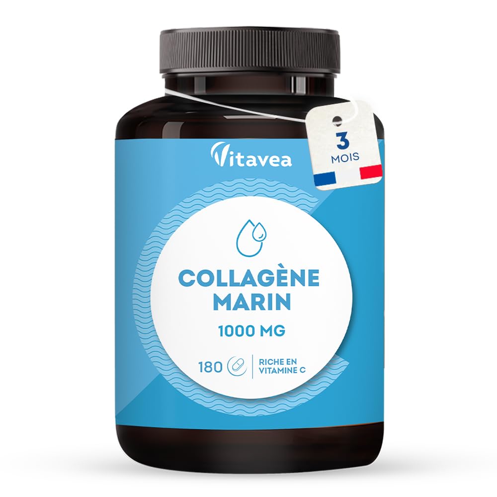 Marine Collagen Food Supplement Product Details The VITAVEA MARINE COLLAGEN formula is your ally to regain radiant, elastic and supple skin. Collagen is a protein naturally present in our body. With age, collagen production decreases and deteriorates. Our VITAVEA MARINE COLLAGEN formula is a complete food supplement enriched with vitamin C and selenium to participate in the normal formation of collagen and ensure the normal function of the skin. About Vitavea Vitavea, specialist in natural well-being, offers you a wide range of products to take care of you. We are committed to supporting you in your well-being process and enabling you to find the product that meets your needs. Accessible to all, easy to use, our products fit ideally into your daily life. All our products are made in France, guaranteeing you quality and respect for manufacturing processes. With Vitavea, well-being and health are within reach! Ingredients Ingredients: FISH collagen hydrolyzate: bulking agent: sorbitol: concentrated acerola juice powder (Malpighia glabra enriched with vitamin C): beet juice powder (Beta vulgaris) anti-caking agent: magnesium salts of fatty acids: selenated yeast (Saccharomyces cerevisiae). span Active content for 2 tablets Fish collagen hydrolyzate: 1112 mg Including collagen proteins: 1000 mg Concentrated acerola juice powder: 120 mg - Including vitamin C: 24 mg (30 of NRV ) - Selenium: 33 µg (60 of NRV ) NRV Nutrient Reference Values Directions for use 2 tablets per day, in the morning with a glass of water. Precautions for use Do not exceed the recommended daily dose. To be consumed as part of a varied and balanced diet and a healthy lifestyle. Store in a dry, cool place. Keep out of reach of children. Excessive consumption can have laxative effects. Not recommended for children under 10 years old. INGREDIENTS Ingredients: FISH collagen hydrolyzate: bulking agent: sorbitol: concentrated acerola juice powder (Malpighia glabra enriched with vitamin C): beet juice powder (Beta vulgaris) anti-caking agent: magnesium salts of fatty acids: selenated yeast (Saccharomyces cerevisiae). DIRECTIONS FOR USE 2 tablets per day, in the morning with a glass of water. SAFETY WARNING Do not exceed the recommended daily dose. To be consumed as part of a varied and balanced diet and a healthy lifestyle. Store in a dry, cool place. Keep out of reach of children. Excessive consumption can have laxative effects. Not recommended for children under 10 years old. MADE IN FRANCE: This Marine Collagen food supplement enriched with vitamin C and selenium is made in France in our laboratories in Vendée, in compliance with manufacturing and quality processes. We develop all our products according to strict and controlled protocols and standards, thus guaranteeing impeccable quality. PRACTICAL LONG-LASTING FORMAT: Thanks to a high dosage of 1000 mg of collagen, combined with vitamin C and selenium, our Marine Collagen brings you all the benefits for your skin and joints, in 2 tablets per day. Our pack contains 180 tablets, or a 3-month course. Developed by micronutrition experts, this food supplement is gluten-free, lactose-free, sugar-free, and gelatin-free. It is also formulated without artificial flavors or colors. RESPONSIBLE SOURCING: Our marine collagen comes from controlled and committed supply chains. Our collagen comes from selected wild fish, as part of sustainable fishing that respects marine ecosystems. Collagen peptides are obtained by an enzymatic extraction method using no solvents. RECOGNIZED ACTIVE INGREDIENTS: Collagen is a protein naturally present in our body. With age, its production deteriorates. Our Marine Collagen allows the skin to regain hydration, elasticity, and radiance. The molecular weight of collagen peptides is around 2000 Da, which makes them fully assimilated by the body. The formula of this food supplement based on vitamin C and selenium improves joint flexibility, making it an ally for athletes. COLLAGEN SKIN JOINTS: Our Vitavea Marine Collagen food supplement is the complete solution for supple skin and joints. Our hydrolyzed marine collagen contains 2 major types of collagen. It is enriched with plant-based vitamin C, from acerola, and selenium, which contribute to collagen production and protect cells from oxidative stress. An ally to prevent skin aging and protect your joints! Complément Alimentaire Collagène Marin Détails du produit La formule COLLAGENE MARIN VITAVEA est votre alliée pour retrouver une peau éclatante, élastique et souple. Le collagène est une protéine naturellement présente dans notre organisme. Avec l'âge, la production de collagène diminue et se détériore. Notre formule COLLAGENE MARIN VITAVEA est un complément alimentaire complet enrichi en vitamine C et en sélénium pour participer à la formation normale de collagène et assurer la fonction normale de la peau. A propos de Vitavea Vitavea, spécialiste du bien-être au naturel, vous propose une large gamme de produits pour prendre soin de vous. Nous avons à cœur de vous accompagner dans votre démarche bien-être et de vous permettre de trouver le produit qui répond à vos besoins. Accessibles à tous, faciles d'utilisation, nos produits s'intègrent idéalement dans votre vie quotidienne. Tous nos produits sont fabriqués en France, vous garantissant qualité et respect des processus de fabrication. Avec Vitavea, le bien-être et la santé sont à portée de main ! Ingrédients Ingredients: Hydrolysat de collagène de POISSON : agent de charge : sorbitol: poudre de jus concentré d'acérola (Malpighia glabra enrichi en vitamine C) : poudre de jus de betterave (Beta vulgaris) anti-agglomérant : sels de magnésium d'acides gras: levure séléniée (Saccharomyces cerevisiae). span Teneur en actifs pour 2 comprimés Hydrolysat de collagène de poisson : 1112 mg Dont protéines collagéniques : 1000 mg Poudre de jus concentré d'acérola : 120 mg - Dont vitamine C : 24 mg (30 des VNR ) - S