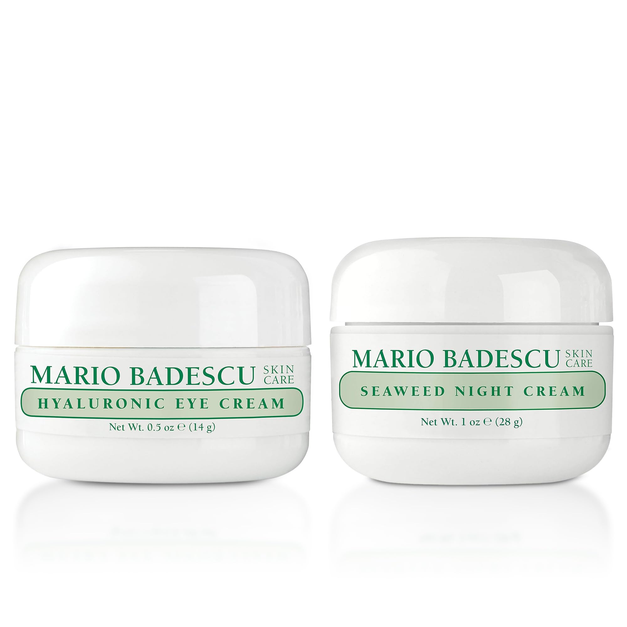 Mario Badescu Hyaluronic Eye Cream 0.5 oz with Mario Badescu Seaweed Night Cream for Combination Oily & Sensitive Skin| Oil-Free Moisturizer with
