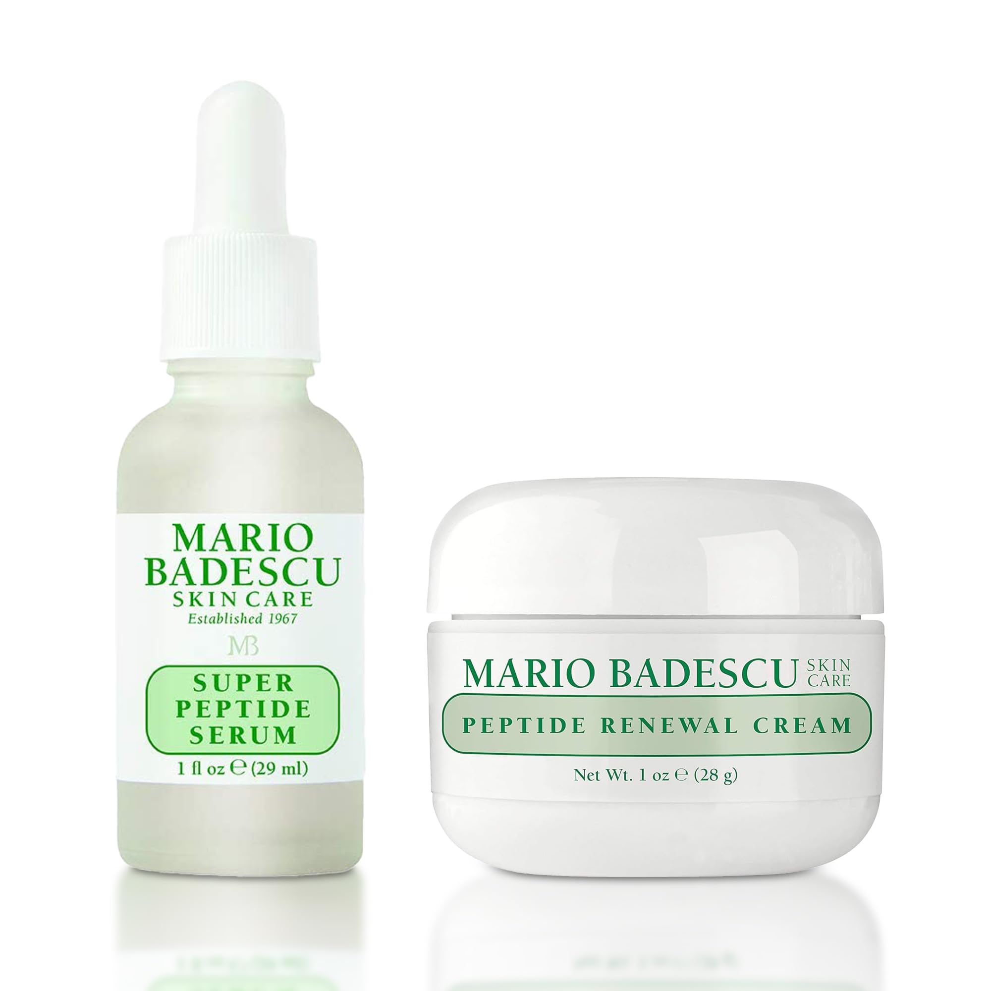 Mario Badescu Peptide Renewal Face Cream & Super Peptide Serum Set Hydrating and Anti Aging Facial Moisturizer & Face Serum for Smooth Plump Youthful-Looking Skin Care for Women & Men