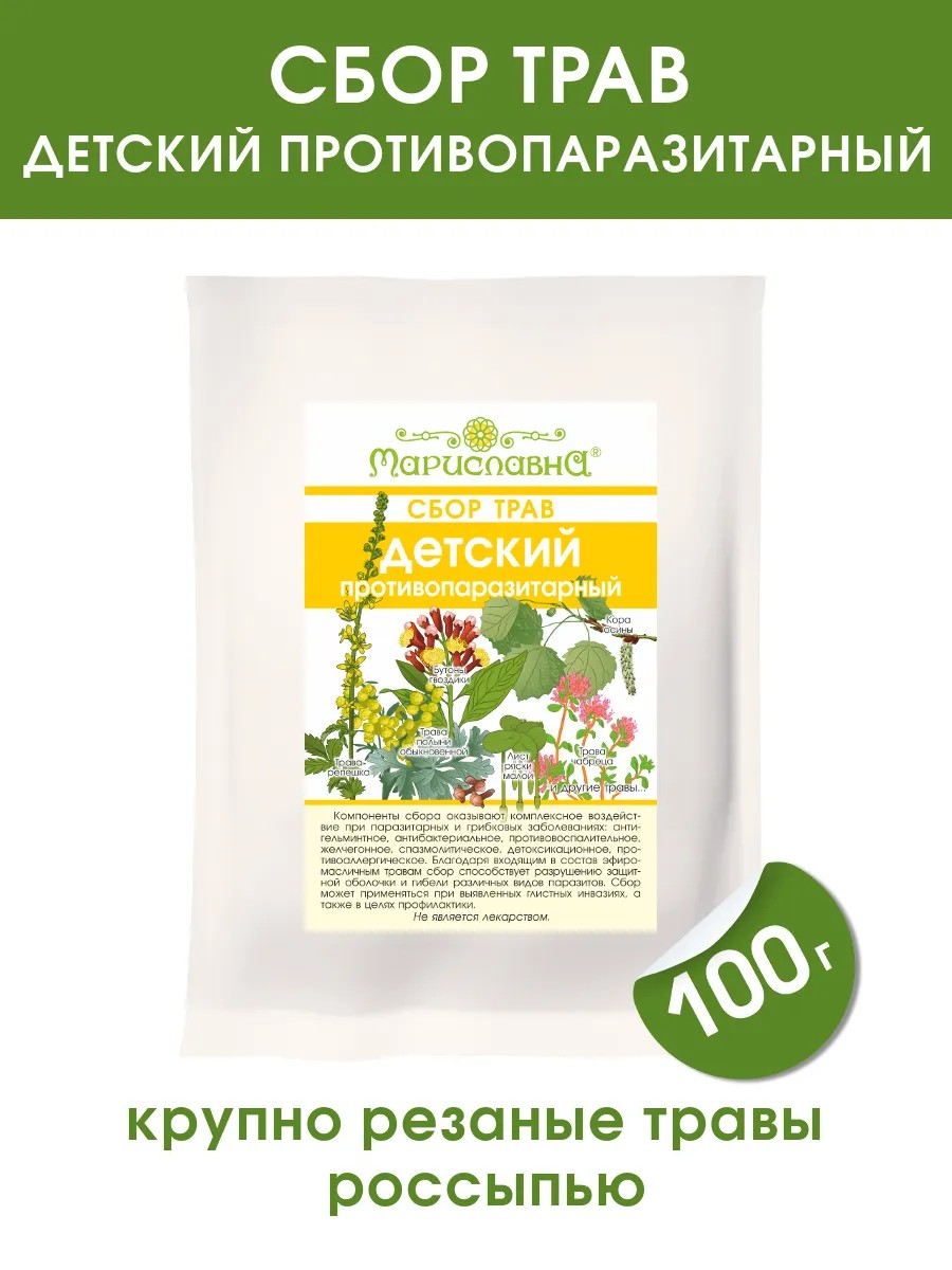 Сбор трав "Детский противопаразитарный" предназначен для детей 1-7 лет с целью профилактики и устранения глистных инвазий в кишечнике, печени и других органах, а также в комплексных программах при бактериальных и грибковых инфекциях.