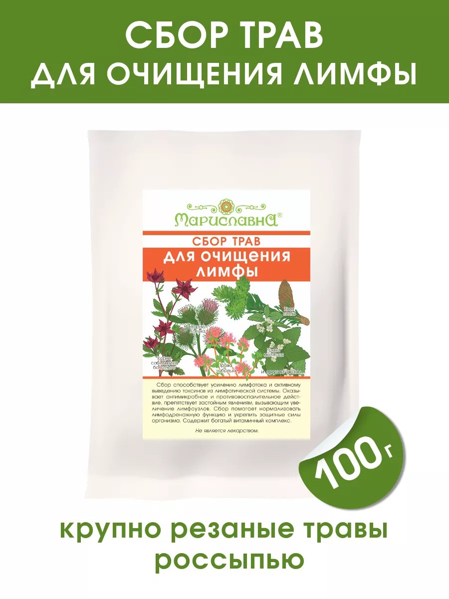 Сбор трав "Для очищения лимфы" рекомендуется в комплексных программах очищения и оздоровления организма, а также при заболеваниях, сопровождающихся воспалением лимфатических узлов. Состав: корни алтея, корни лопуха, корни сабельника болотного, лист чёрной смородины, побеги coлянки холмовой, трава мелиссы, трава чабреца, трава череды, трава шалфeя, хвоя пихты. Сбор способствует усилению лимфотока и активному выведению токсинов из лимфатической системы. Травы оказывают антимикробное и противовоспалительное действие, препятствуют застойным явлениям и бактериальной нагрузке, вызывающим увеличение лимфоузлов. Сбор помогает нормализовать лимфодренажную функцию и укрепить иммунную систему организма, обеспечивает эффективный детокс. Сбор может применяться при лимфостазе, отёках, избыточной массе тела, целлюлите, увеличении лимфоузлов при инфекционных и онкологических заболеваниях. Рекомендуемый курс 1 месяц в зависимости от проблемы, можно проводить несколько курсов в год. Упаковка содержит 100 грамм травяной смеси россыпью, которой хватит примерно на 10 дней. На обороте бумажного пакета нанесена информация о составе и приготовлении. Противопоказания: беременность, лактация, индивидуальная непереносимость компонентов состава.