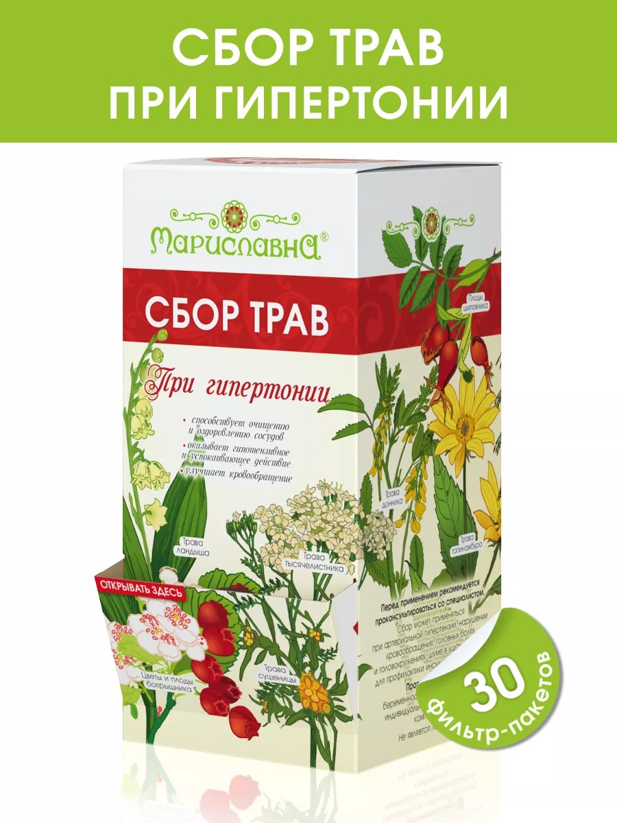 Сбор трав "При гипертонии" предназначен для оздоровления сердечно-сосудистой системы при повышенном артериальном давлении. Состав: цветы и плоды боярышника кроваво-красного, трава хвоща, трава и цветы тысячелистника, трава пастушьей сумки, трава чабреца, трава пустырника, трава дoнникa, трава сушеницы болотной, лист oмeлы белой, лист перечной мяты, плоды шиповника. Компоненты сбора способствуют очищению сосудов и улучшению эластичности сосудистой стенки, оказывают сосудорасширяющее и гипотензивное действие, улучшают клеточный жировой обмен, способствуют снижению холестерина низкой плотности. Сбор рекомендуется при артериальной гипертензии любой степени, нарушении кровообращения, головных болях и головокружениях, шуме в ушах и голове. Сбор трав комплексно оздоравливает сердечно-сосудистую систему, рекомендуется людям старшего возраста для профилактики инсультов и инфарктов. В состав сбора входят витаминные и общеукрепляющие травы. Курс 1-2 месяца. Рецепт приготовления указан на упаковке. Противопоказания: беременность, лактация, гипотония, индивидуальная непереносимость компонентов состава. Чай в пакетиках удобно брать на работу, в поездки, можно подарить родителям и друзьям в любой праздник. Удобная форма в фильтр-пакетах и фирменная коробочка с откидным окошком упростят процесс хранения, дозирования, заваривания и процеживания.