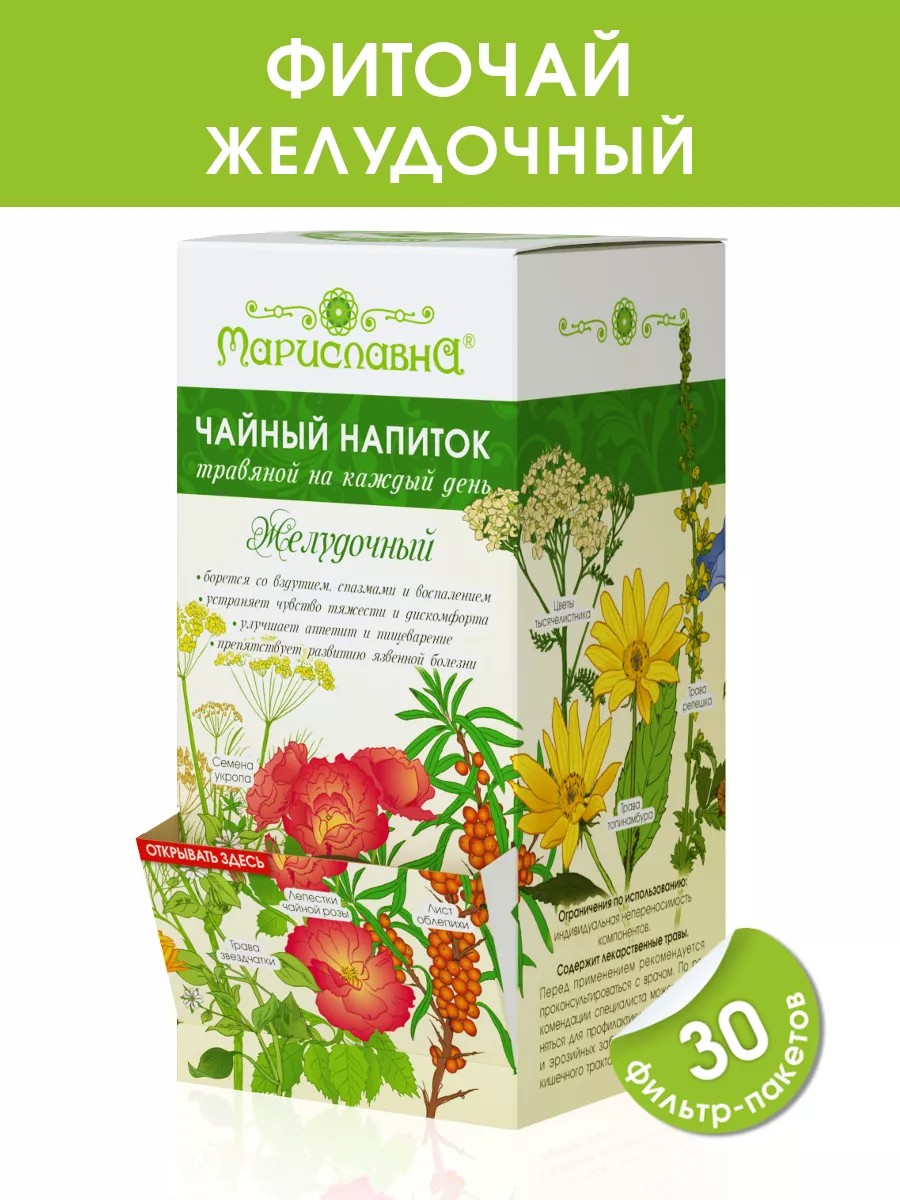 Мариславна Фиточай "Желудочный" при дисбактериозе, вздутии, воспалении