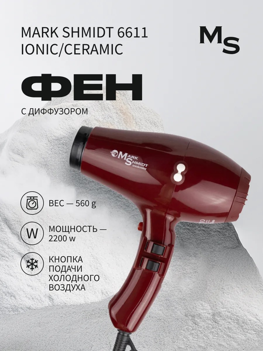Тип фенаПрофессиональный фен для волос; Профессиональная парикмахерская техника; Профессиональный фен для волос Mark Shmidt